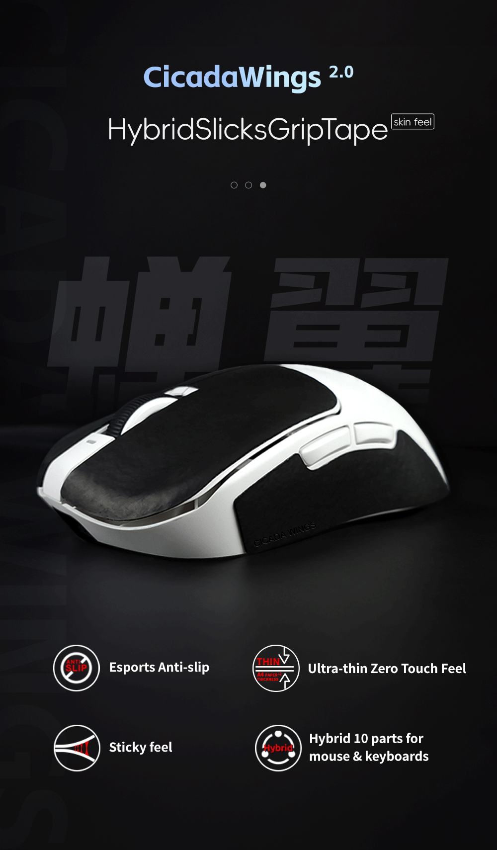 شريط القبضة Cicada Wings Slicks Grip Tape هو أول شريط قبضة هجين فائق النحافة في فئته! مصمم خصيصًا لفأرة LAMZU MAYA X، ويتميّز بنحافته الفائقة وعدد أكبر من أجزاء الشريط لتوسيع منطقة تلامس الأصابع، مما يوفر ملاءمة أفضل وتحكمًا دقيقًا.