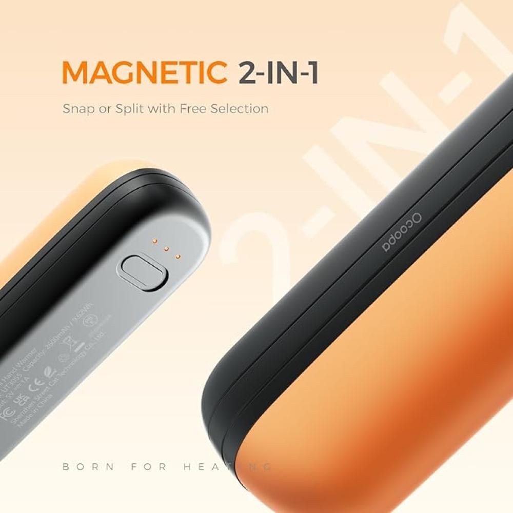 - تصميم مغناطيسي من النوع المنفصل: تستطيع ان تفصل بين القطعتين لكي تستخدمها لتدفئة يديك بحجم راحة اليد، لتناسب جيبين من سترتك او ثوبك، او يمكنك مشاركتها مع من اردت