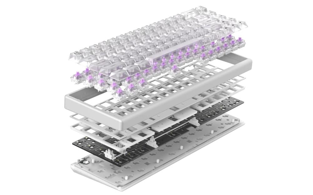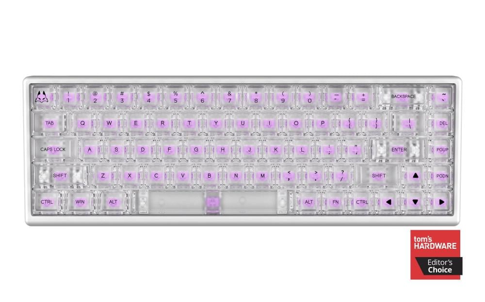 Introducing the Phantom Series for Polar 65, boasting PC Clear keycaps with a frosted surface, designed to elevate your lighting experience with perfect balance. This magnetic keyboard is the ideal setup for minimalists while delivering top-tier performance and style, tailored for the trendy taste of the new clear generation. Every keyboard in this series comes with the latest Dual-Rail Fuji Switches, factory pre-lubed to ensure a velvety-smooth typing experience that delights the senses.