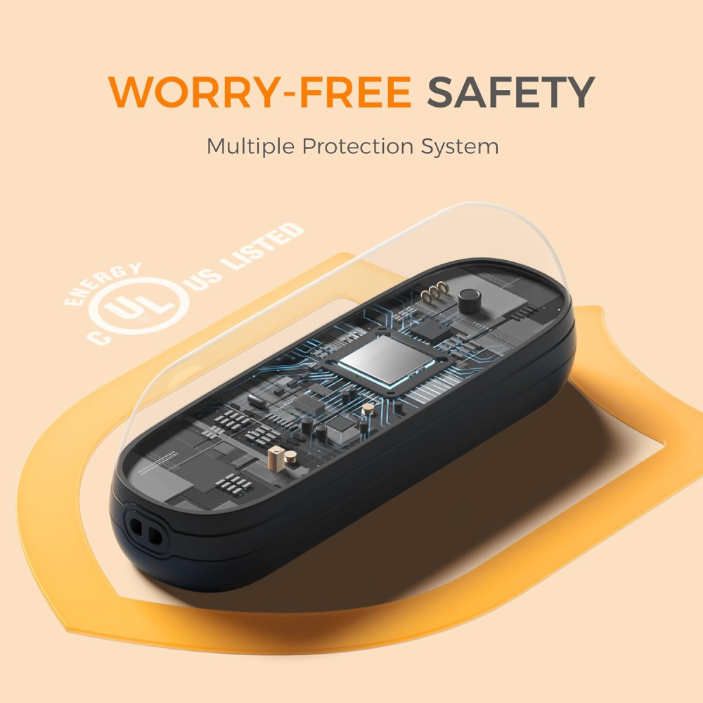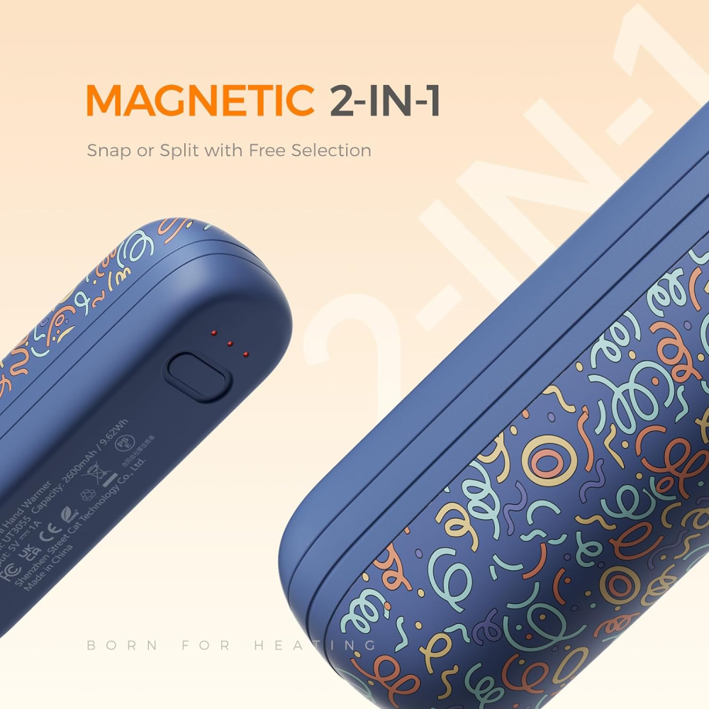 - تصميم مغناطيسي من النوع المنفصل: تستطيع ان تفصل بين القطعتين لكي تستخدمها لتدفئة يديك بحجم راحة اليد، لتناسب جيبين من سترتك او ثوبك، او يمكنك مشاركتها مع من اردت